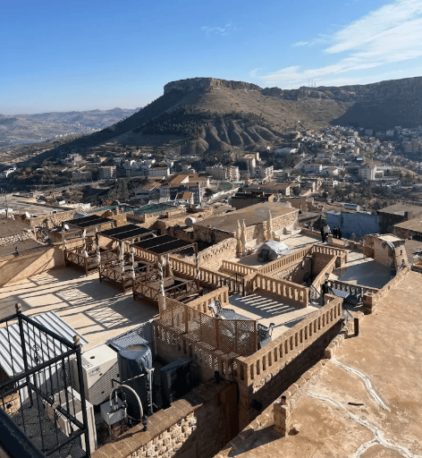 Mardin’in teraslı yerleşim ve kademeli mimari yapısı nedeniyle manzara deneyimi oda konumuna göre ciddi şekilde değişebilir. Resmî kaynaklarda da evlerin ovaya doğru teraslar halinde dizildiği özellikle belirtilir.
